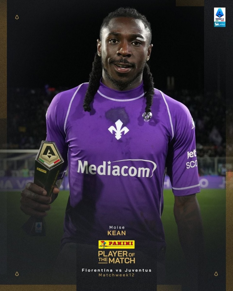 战旧主送出助攻!意甲官方:基恩当选为佛罗伦萨vs尤文全场最佳